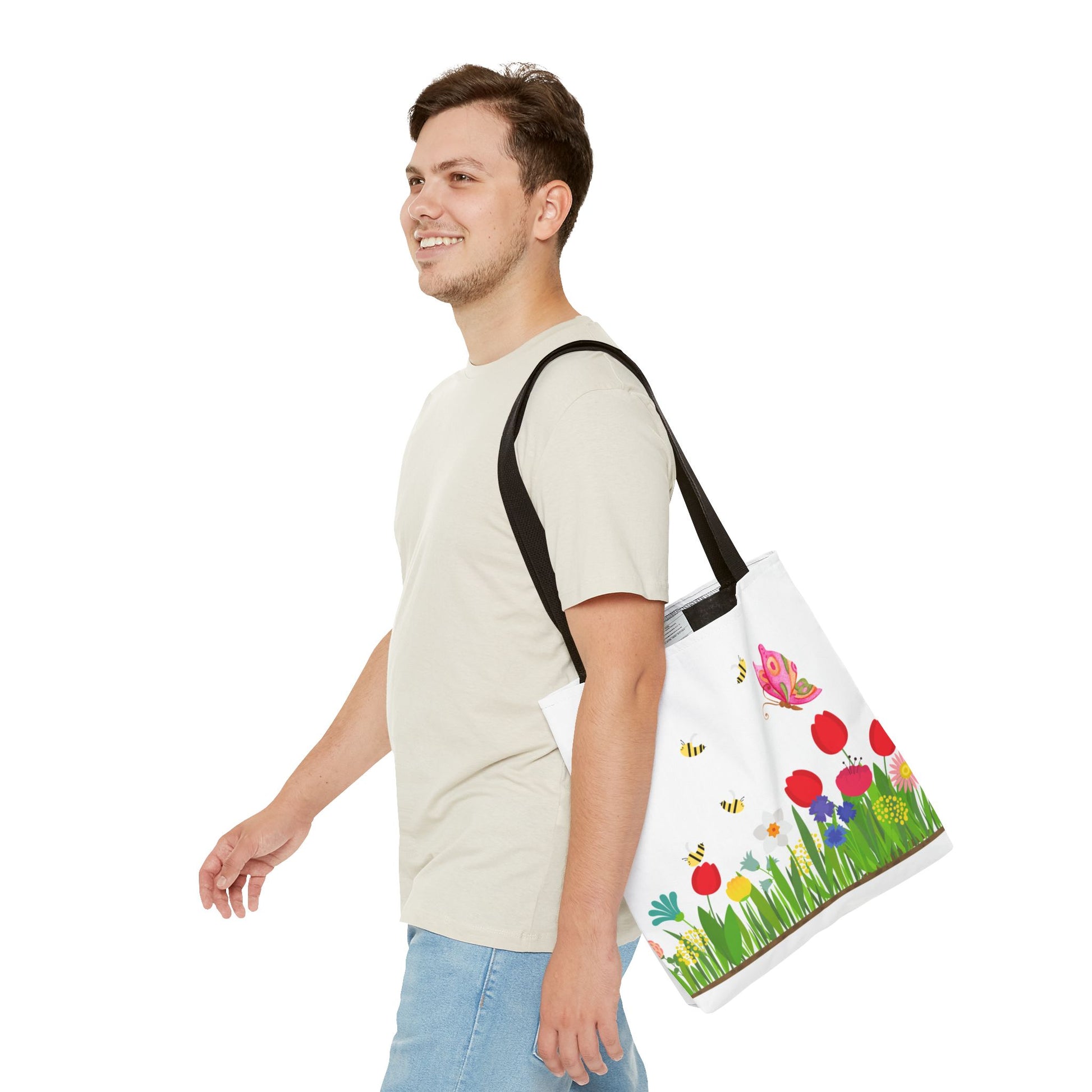 Available in 3 sizes to add both functionality and style, these custom-printed tote bags come with multiple handle colors to match your designs. Made with spun polyester, these bags feature double-stitched seams, cotton webbing straps, and nonwoven laminate lining for high-end durability. Your all-over print is created with dye sublimation for high-end visuals.