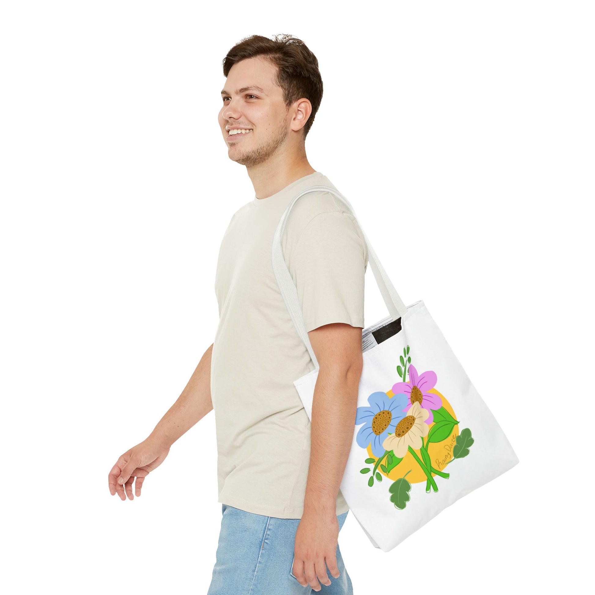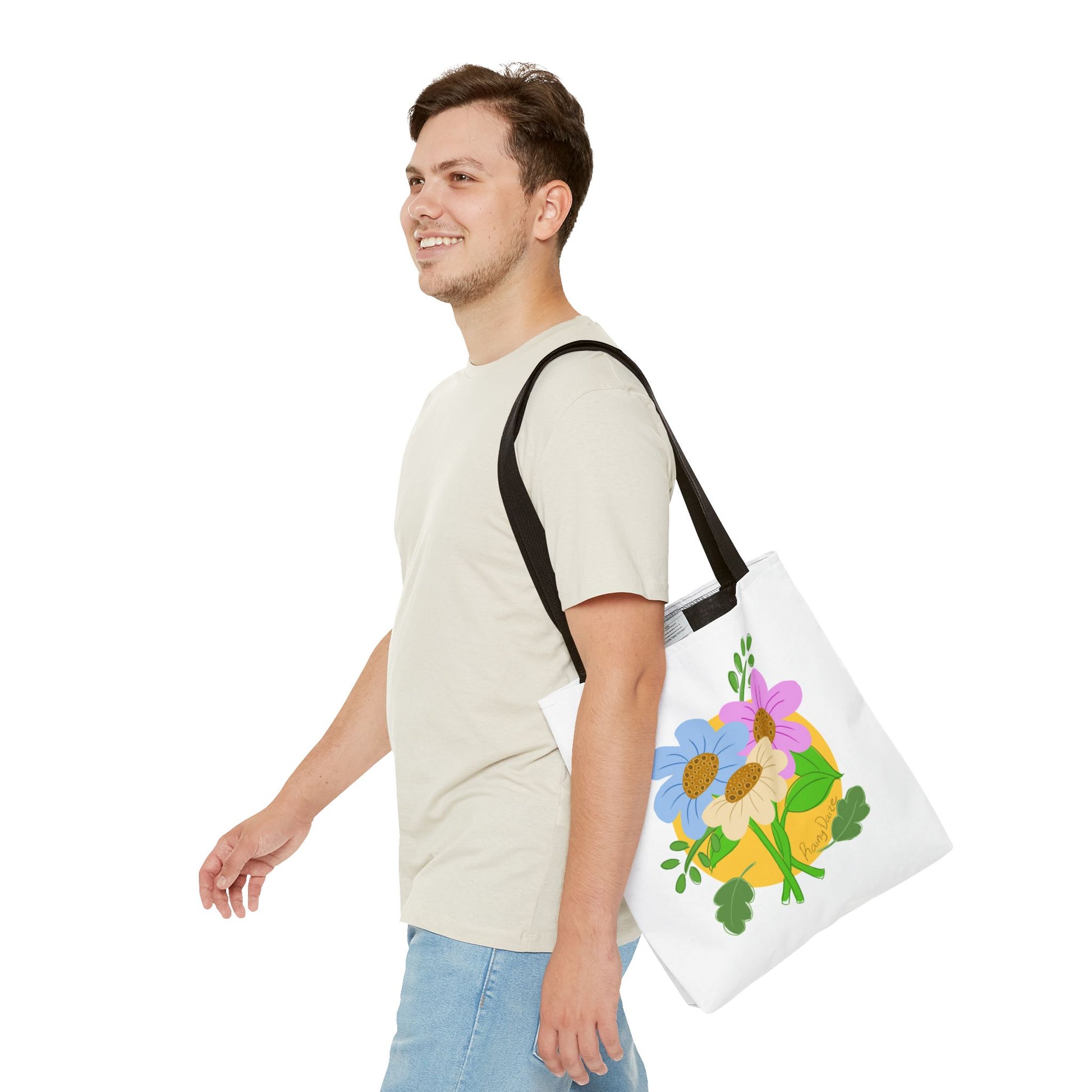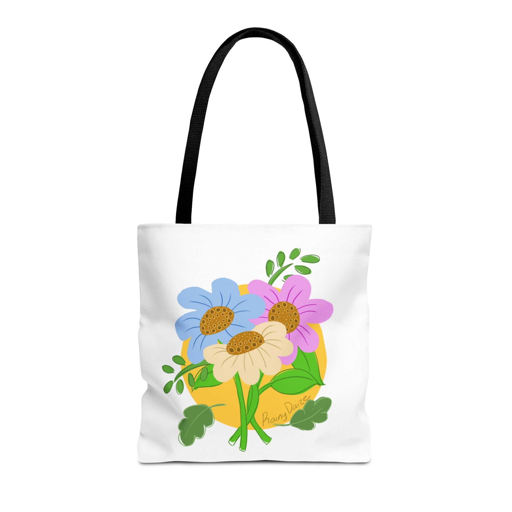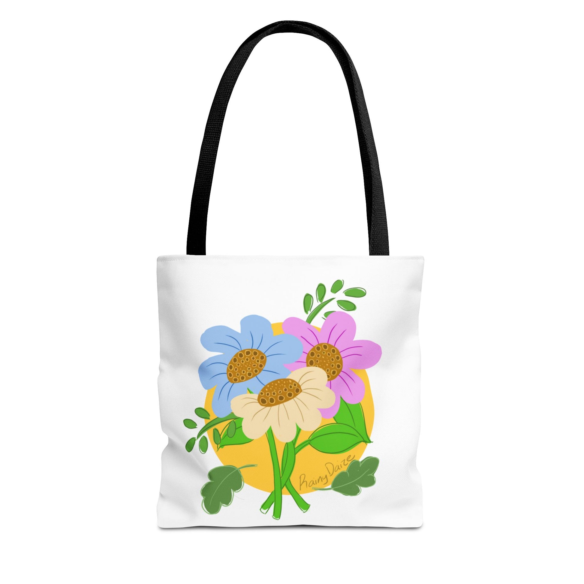 Available in 3 sizes to add both functionality and style, these custom-printed tote bags come with multiple handle colors to match your designs. Made with spun polyester, these bags feature double-stitched seams, cotton webbing straps, and nonwoven laminate lining for high-end durability. Your all-over print is created with dye sublimation for high-end visuals.