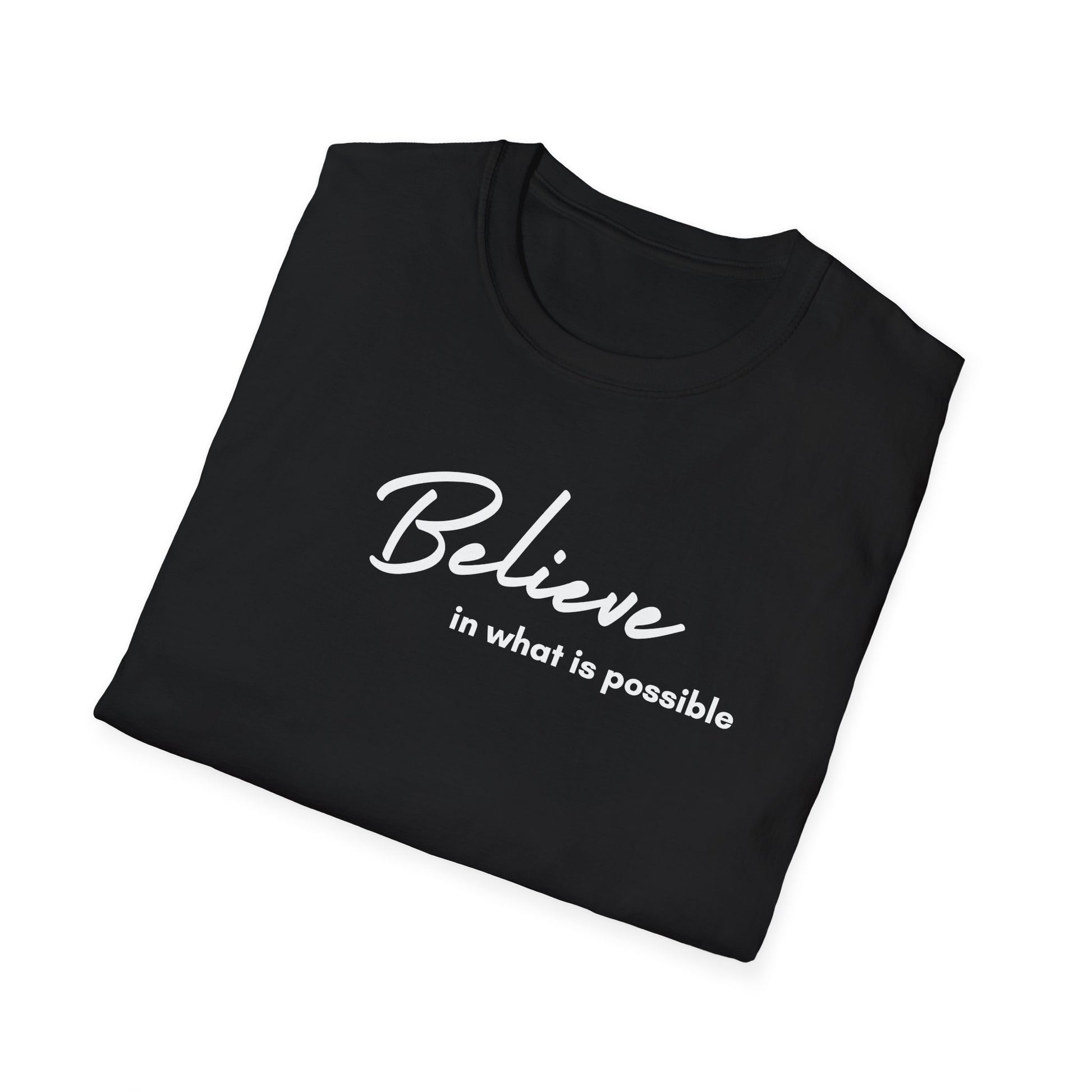 It only takes a tiny bit of faith! This women's soft-style t-shirt puts a new spin on casual comfort. Made from very soft materials, this tee is 100% cotton for solid colors. Heather colors and sports grey include polyester. The shoulders have twill tape for improved durability. There are no side seams. The collar is made with ribbed knitting to prevent curling damage.