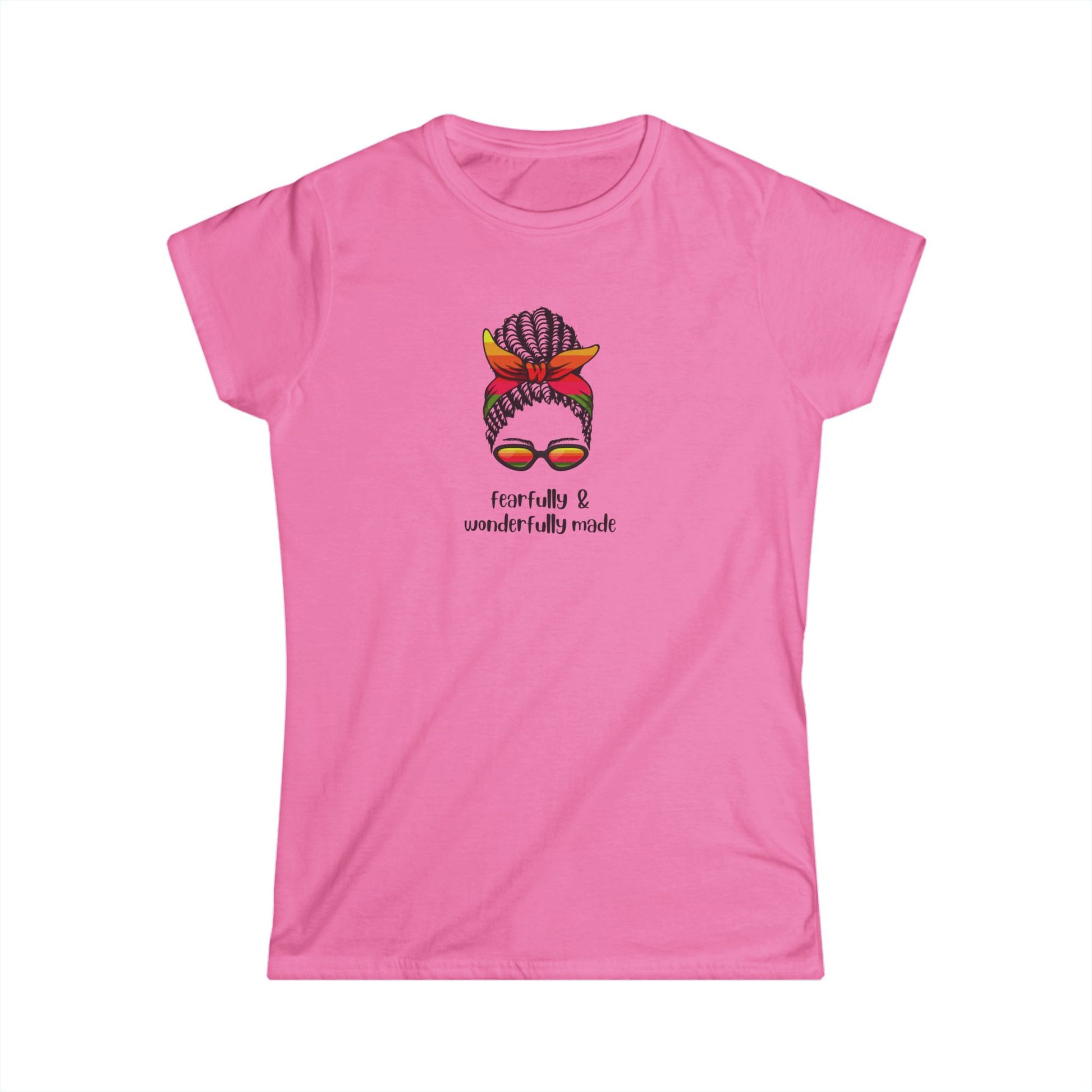 Confident and bold and ready to show it! This women's slim-fit softstyle tee is a more feminine take on the classic tee. The sleeves are shortened to reveal some shoulder. The fabric is 100% ringspun cotton for all solid colors. The shoulders are taped with twill to prolong durability. The collar seam is reinforced with ribbed knitting.